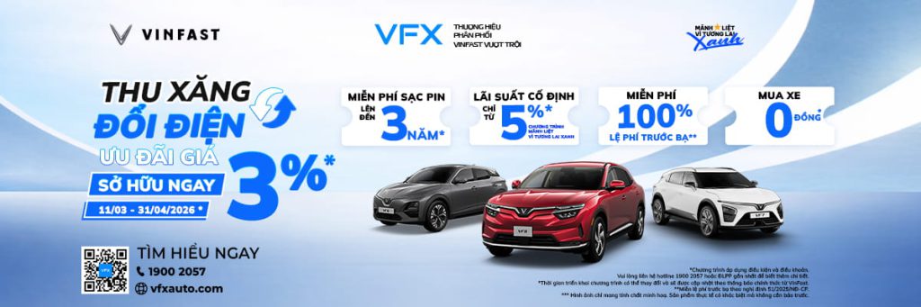 Đặc biệt, VFXanh đang triển khai chiến dịch “Mãnh liệt tinh thần Việt Nam”, liên kết cùng Vietcombank, Techcombank, BIDV để mang đến gói vay ưu đãi: